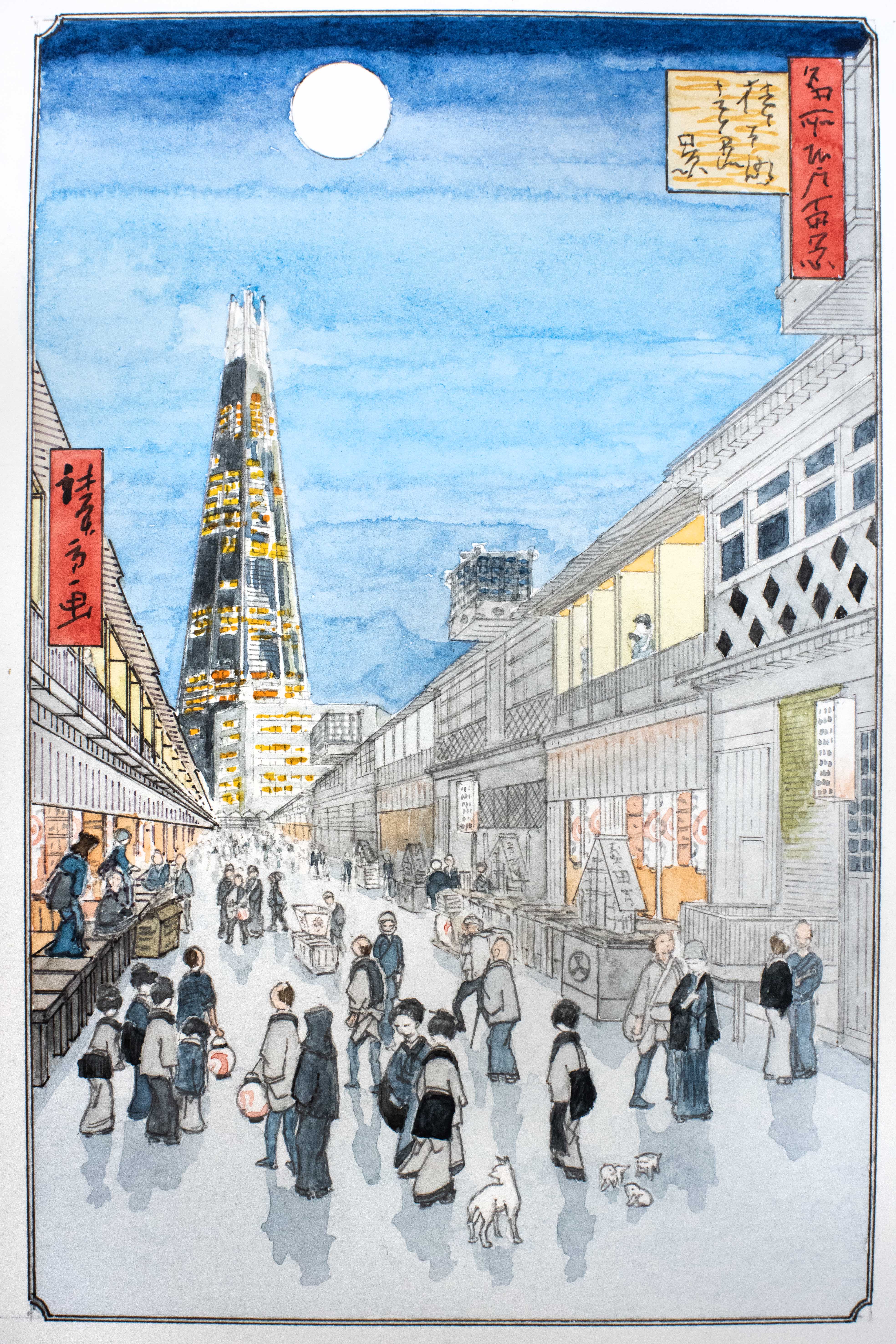 After Hiroshige: One Hundred Famous Views of the London Shard is a book that revolves around the tower of the Shard within the urban landscape and skyline of London, echoing the role of Mount Fuji as a recurring motif in the work of both Hokusai and Hiroshige.