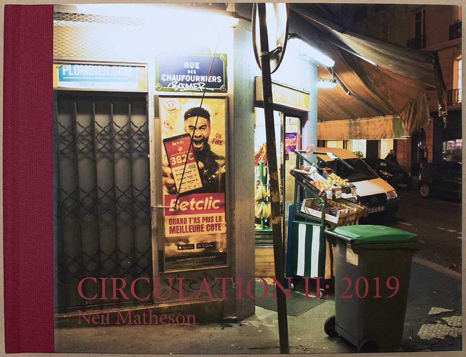 Circulation II: 2018 is a landscape format photobook that continues the diaristic Circulation II series. The book is focused upon the Paris Photo exhibit at the Grand Palais, the Marais, Pigalle and Montmartre, together with the area around the Gare du Nord. The book explores the role of photography in fields such as fashion, tourism and advertising, as part of the continual flow of media imagery experienced in public spaces.