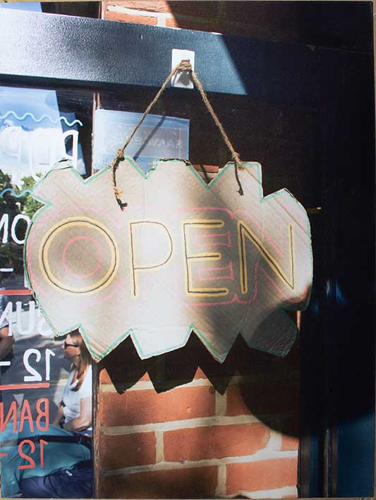 YES we are OPEN! Sorry, we are CLOSED is a photobook produced following the onset of the Covid-19 pandemic and the subsequent lockdowns that saw shops and businesses closed down across the country. The series records some of the signs that appeared during that time - closures, wearing of facemasks, sanitising of hands, etc. - and attempts to capture some of the uncertainty of that period.