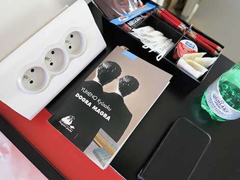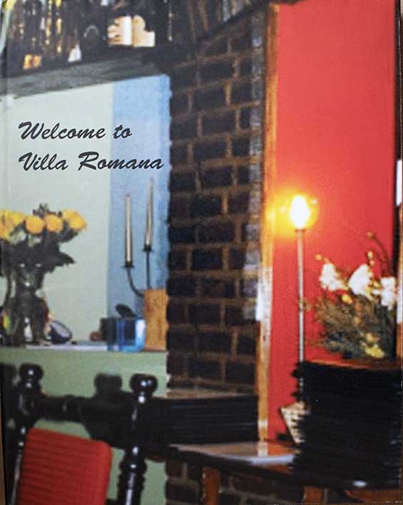 The endpapers are of photos of dozens of similarly named 'Villa Romana' restaurants around the world.