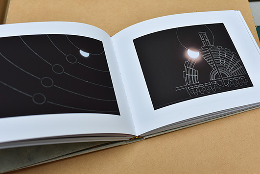 136pp. 204 x 274mm. Hardback open-spine binding with hand-coloured threads and Chiyogami endpapers. Acetate cover.
