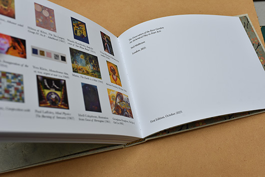 The Desecration of the Rose Garden: An Alchemical Play in Four Acts is a book that traces the destruction of the rose garden. The book is structured by month using the twelve stages of the alchemical 'Great Work', where each month has a plan of the garden in which the colours are taken from works by artists associated with alchemy, magic, spirituality and occultism. Artists used include Ithell Colquhoun, Kandinsky, Hilma af Klint and Mondrian, among others.