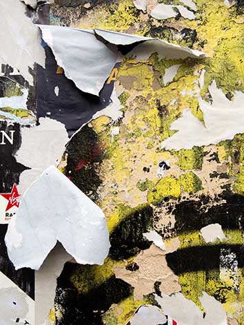 The series poses such torn posters as a form of 'décollage', as in the work of French artists such as Raymond Hains and Jacques Villeglé, where the commercial message is subverted and new meanings are suggested.