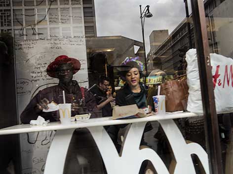 No Sex in Heaven is a photobook produced on London's Oxford Street, the city's major shopping axis, weaving together three thematic strands: mass consumerism, religious evangelism and street homelessness. Deploying both imagery and texts, the book explores the juxtaposition of affluence and poverty, street performance, political protest and campaigning on London's streets.