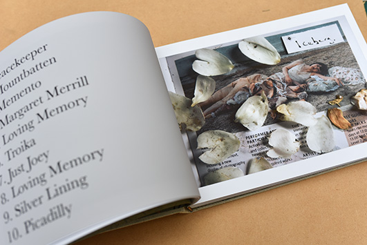 77pp. 204 x 274mm. Hardback open-spine binding with hand-coloured threads and Chiyogami endpapers. Acetate cover.