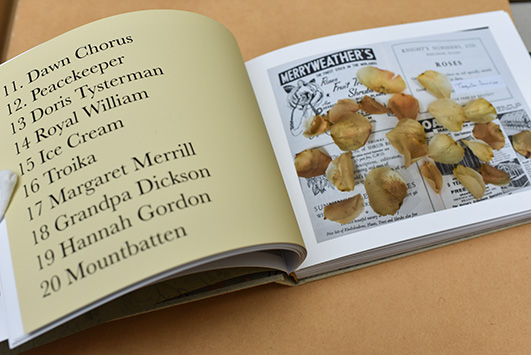 The Desecration of the Rose Garden: An Alchemical Play in Four Acts is a book that traces the destruction of the rose garden. The book is structured by month using the twelve stages of the alchemical 'Great Work', where each month has a plan of the garden in which the colours are taken from works by artists associated with alchemy, magic, spirituality and occultism. Artists used include Ithell Colquhoun, Kandinsky, Hilma af Klint and Mondrian, among others.