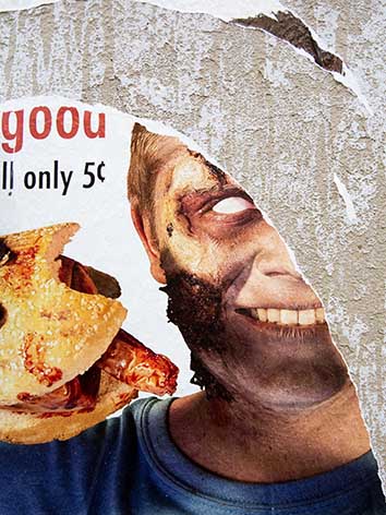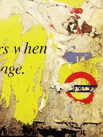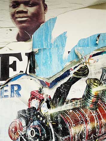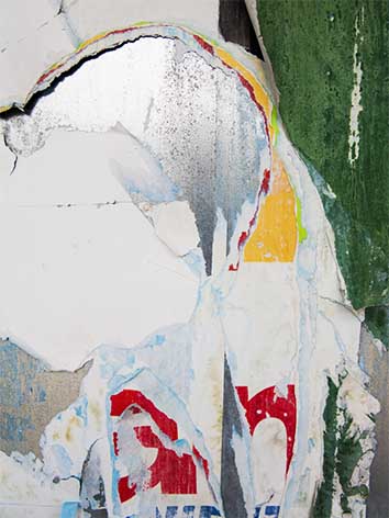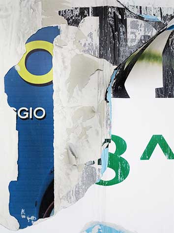 The series poses such torn posters as a form of 'décollage', as in the work of French artists such as Raymond Hains and Jacques Villeglé, where the commercial message is subverted and new meanings are suggested.