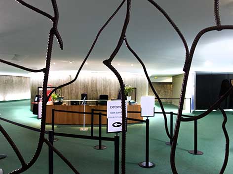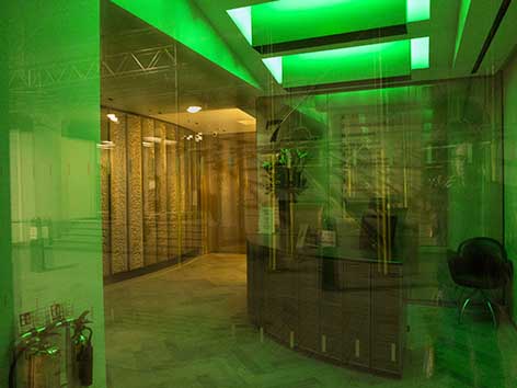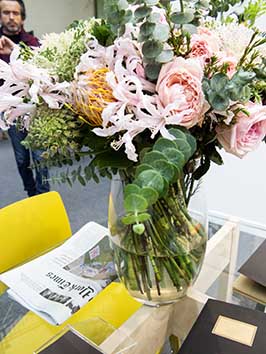 The photographs were mostly produced after office hours, when the lobbies were deserted and the reception desks often covered by bored-looking security staff staring into screens. The book combines the contemporary office photos with the imagery of ikebana flower arrangements in a hacked book on Japanese flower arrangement.